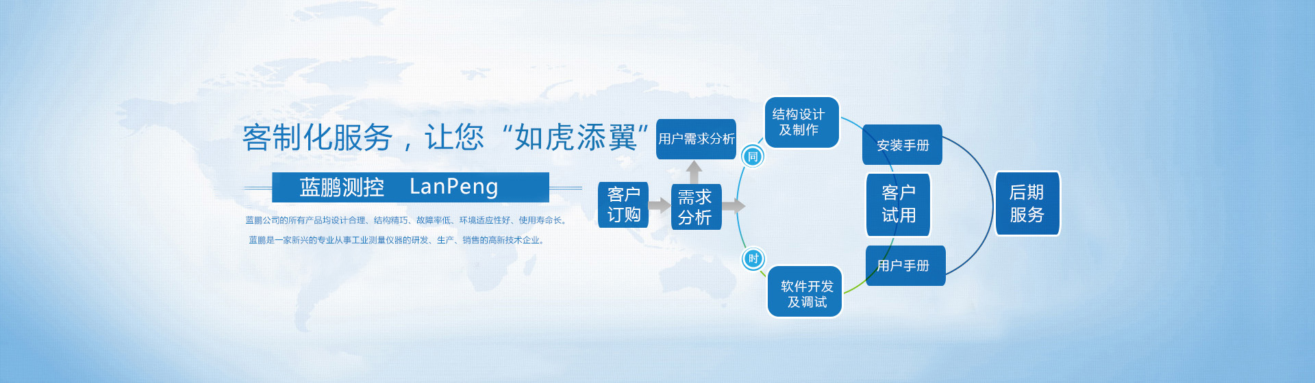 藍鵬以雄厚的技術力量為基礎,以自研的傳感器技術為依托,專業承接各種非標準測量儀器。歡迎有測量問題的企業向我們咨詢各種類型的測量問題。我們將為您提供完善的解決方案。